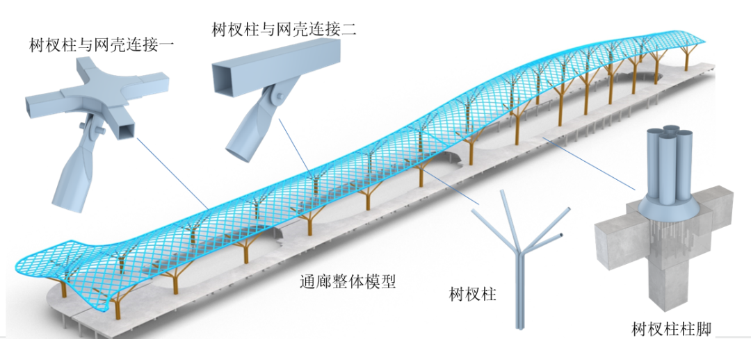 中心通廊作為串聯(lián)項(xiàng)目各分展館的關(guān)鍵樞紐,采用樹形支撐與單層空間曲面網(wǎng)殼相結(jié)合的結(jié)構(gòu)形式,整體尺寸達(dá)26.4米寬、415米長,最高點(diǎn)達(dá)30.8米,相當(dāng)于10層樓高。本次作業(yè)完成了剩余69米長、185噸重的網(wǎng)殼結(jié)構(gòu)的提升工程,與前兩階段已就位的1015噸主體結(jié)構(gòu)實(shí)現(xiàn)毫米級精準(zhǔn)對接。整個(gè)提升過程分階段累計(jì)高空作業(yè)10小時(shí),最終將這一“鋼鐵巨構(gòu)”平穩(wěn)舉升到位。?